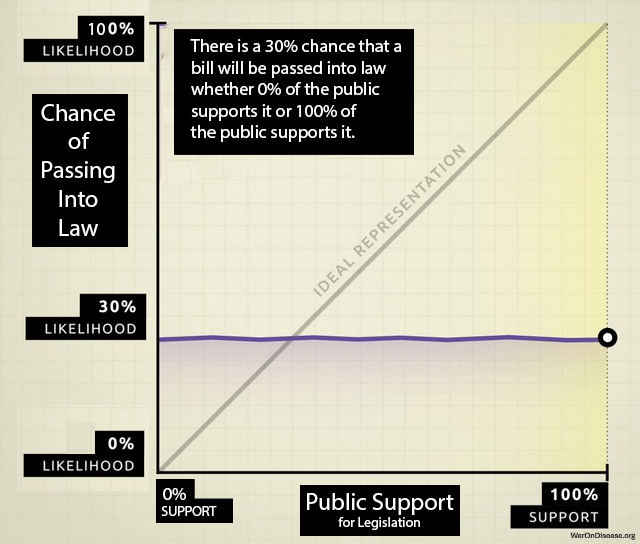 Representative Democracy (Low-Bandwidth Channel): In RepDem, a voter transmits a single scalar signal \(v \in \{c_1, \dots, c_k\}\) (choosing one of \(k\) candidates) every \(T\) years. The channel capacity \(C_{Rep}\) is severely limited by quantization noise. A voter with a precise preference vector \(\vec{p} \in \mathbb{R}^m\) must compress this into a single nominal vote. \[ C_{Rep} \approx \frac{\log_2(k)}{T \text{ years}} \approx 0 \] This extreme lossy compression effectively destroys all information about preference intensity and specific trade-offs (The “Bundle Problem”). This theoretical result aligns with empirical findings by Gilens and Page (2014), who analyzed 1,779 policy outcomes and found that “average citizens have little or no independent influence” on policy.